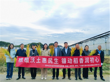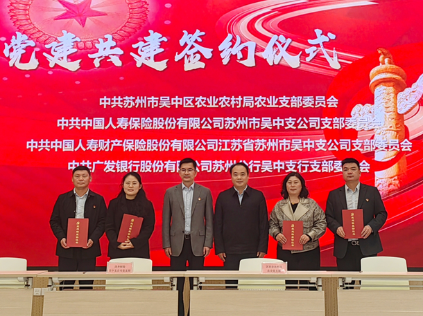 为深入贯彻落实党中央及上级党组织关于创新党建工作模式、服务国家战略的部署要求,11月12日,中共中国人寿保险股份有限公司吴中支公司支部委员会联合中共苏州市吴中区农业农村局农业支部委员会、中共中国人寿财产保险股份有限公司江苏省苏州市吴中支公司支部委员会、中共广发银行股份有限公司苏州分行吴中支行支部委员会共同开展“根植沃土惠民生 镰动稻香润初心”党建共建活动。此次活动旨在通过组织共建、经验共享、发展共谋,共同探索党建工作与乡村振兴深度融合的新路径。